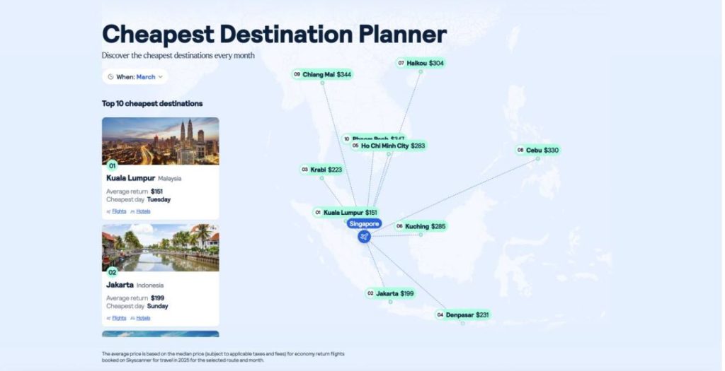 Dreaming of a beach escape? The planner might nudge you towards Langkawi in February for just S$172. Craving a coastal city vibe? Busan in June comes in at around S$329.